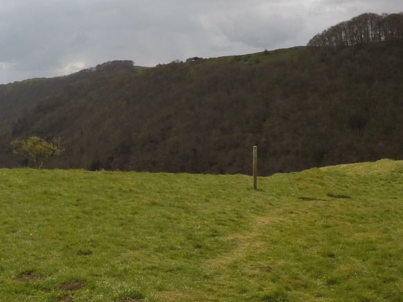 To continue to Baley Hill, follow the path to the right leading up the incline.