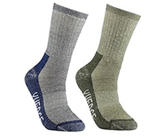 Hiking socks help keep your feet warm while providing ventilation. A good pair of hiking socks adds comfort to your feet and helps reduce the chance of developing blisters.