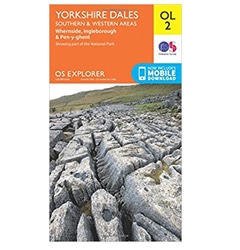 The Yorkshire Dales South & Western (OS Explorer Map) is the Ordinance Survey map which covers the Yorkshire Three Peaks Challenge.