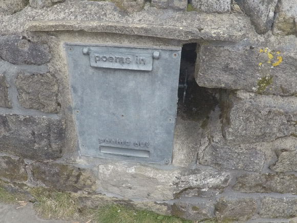 There’s a seating area with a box of poems that you can read or contribute to. The poem box is part of the Stanza Stones Trail created in 2012.